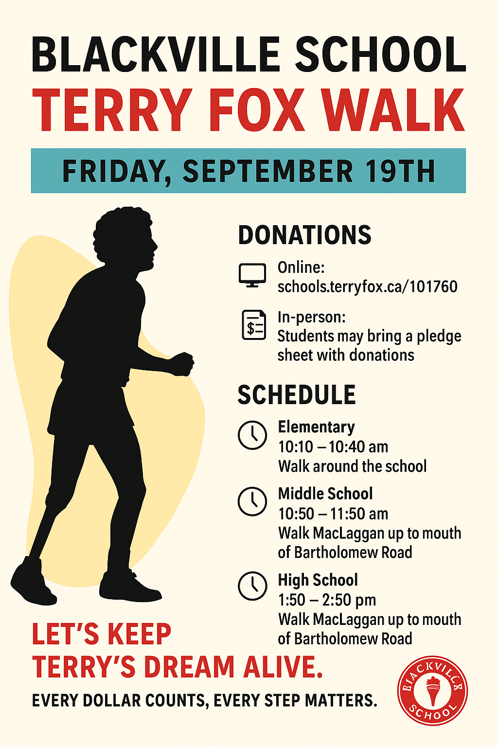 September 19th – Terry Fox Walk (more details to follow)