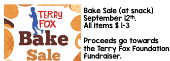 The Terry Fox Walk will take place September 19th. Pledge sheets will be sent home this week. More details about walking times and activities will be sent home closer to the walk. There is also an online donation page available at :