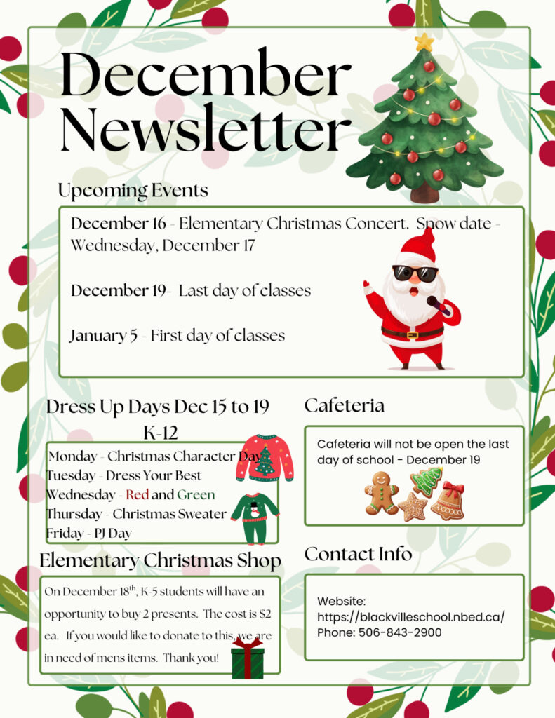 Christmas Shop: On December 18th, students will have the opportunity to purchase 2 gifts from the Christmas Shop. Each gift will cost $2 each. Elves will be there to wrap gifts for students to take home.